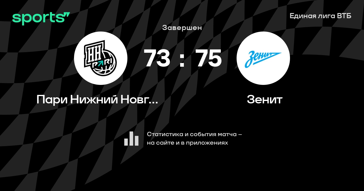В прошедшем матче в рамках турнира Единая лига ВТБ состоялась встреча команд Пари Нижний Новгород - Зенит в городе Нижний Новгород (Россия) на стадионе КРК Нагорный (вместимость - 5600)