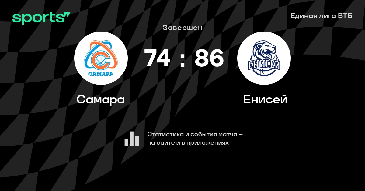 В прошедшем матче в рамках турнира Единая лига ВТБ состоялась встреча команд Самара - Енисей в городе Самара (Россия) на стадионе Дворец спорта со счетом 74 : 86.