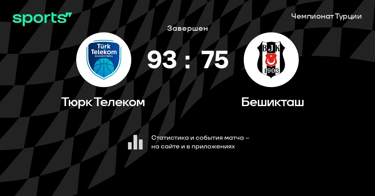 В прошедшем матче в рамках турнира Чемпионат Турции состоялась встреча команд Тюрк Телеком - Бешикташ в городе Ankara на стадионе Ankara Arena со счетом 93 : 75.