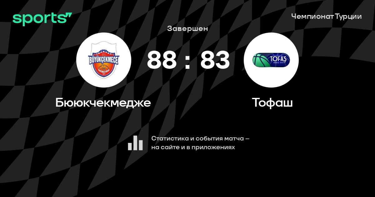 В прошедшем матче в рамках турнира Чемпионат Турции состоялась встреча команд Бююкчекмедже - Тофаш в городе на стадионе Gazanfer Bilge Spor Salonu со счетом 88 : 83.