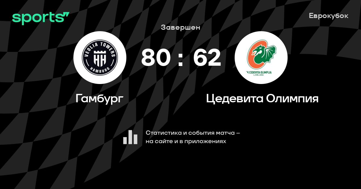 В прошедшем матче в рамках турнира Еврокубок состоялась встреча команд Гамбург - Цедевита Олимпия в городе на стадионе edel-optics.de Arena со счетом 80 : 62.