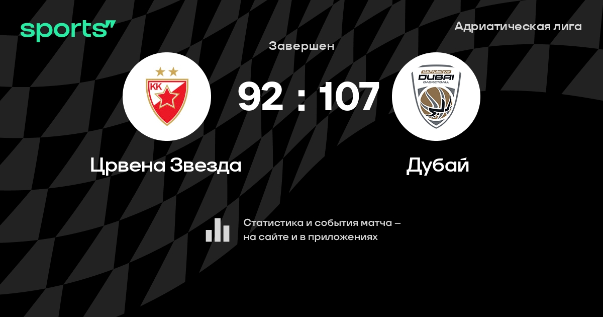 В прошедшем матче в рамках турнира Адриатическая лига состоялась встреча команд Црвена Звезда - Дубай в городе Белград (Сербия) на стадионе Белград Арена (вместимость - 22386)