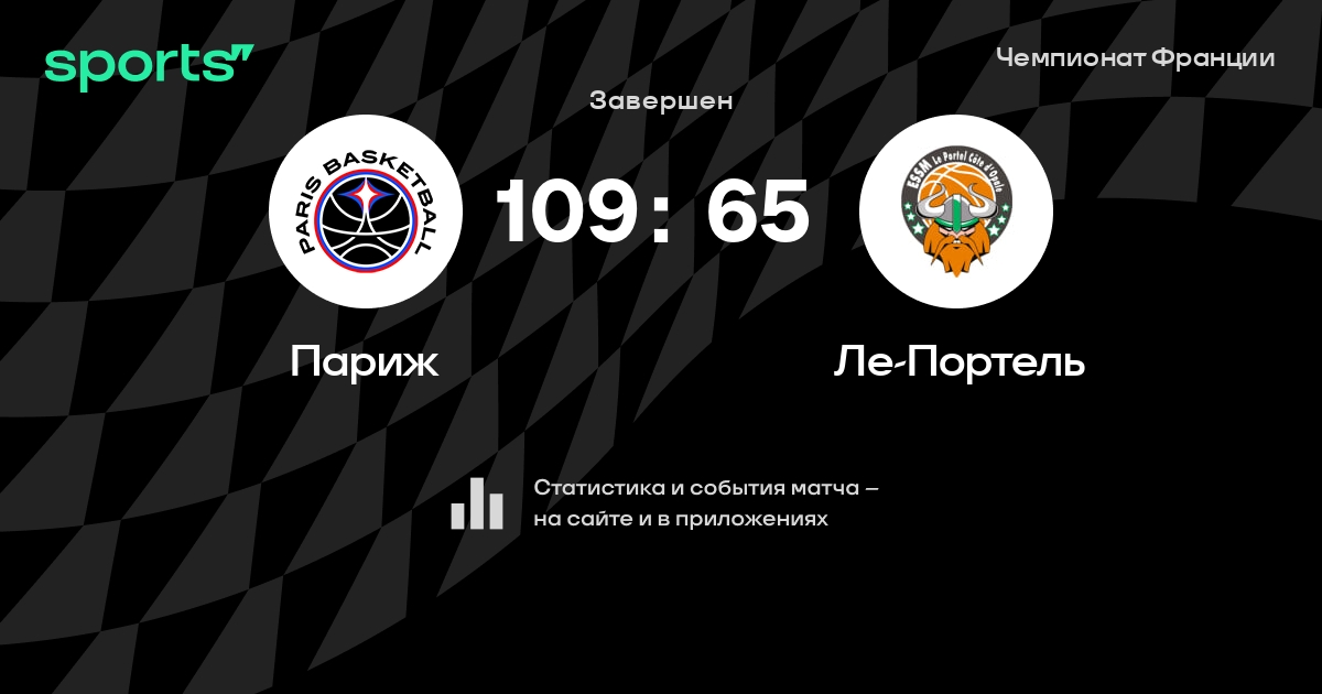 В прошедшем матче в рамках турнира Чемпионат Франции состоялась встреча команд Париж - Ле-Портель в городе Париж (Франция) на стадионе Адидас Арена (вместимость - 8000)