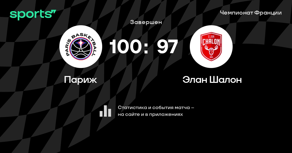 В прошедшем матче в рамках турнира Чемпионат Франции состоялась встреча команд Париж - Элан Шалон в городе Париж (Франция) на стадионе Адидас Арена (вместимость - 8000)