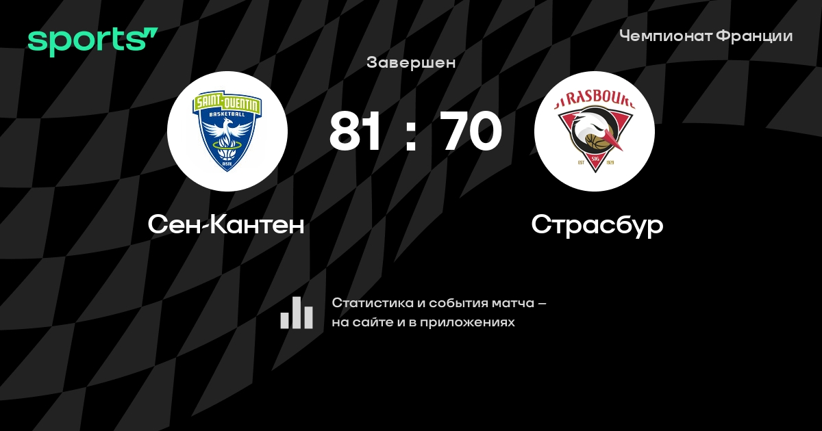 В прошедшем матче в рамках турнира Чемпионат Франции состоялась встреча команд Сен-Кантен - Страсбур в городе на стадионе Palais des Sports Pierre-Rate
