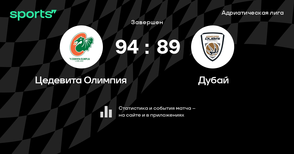В прошедшем матче в рамках турнира Адриатическая лига Четвертьфинал состоялась встреча команд Цедевита Олимпия - Дубай в городе на стадионе Dvorana Stožice