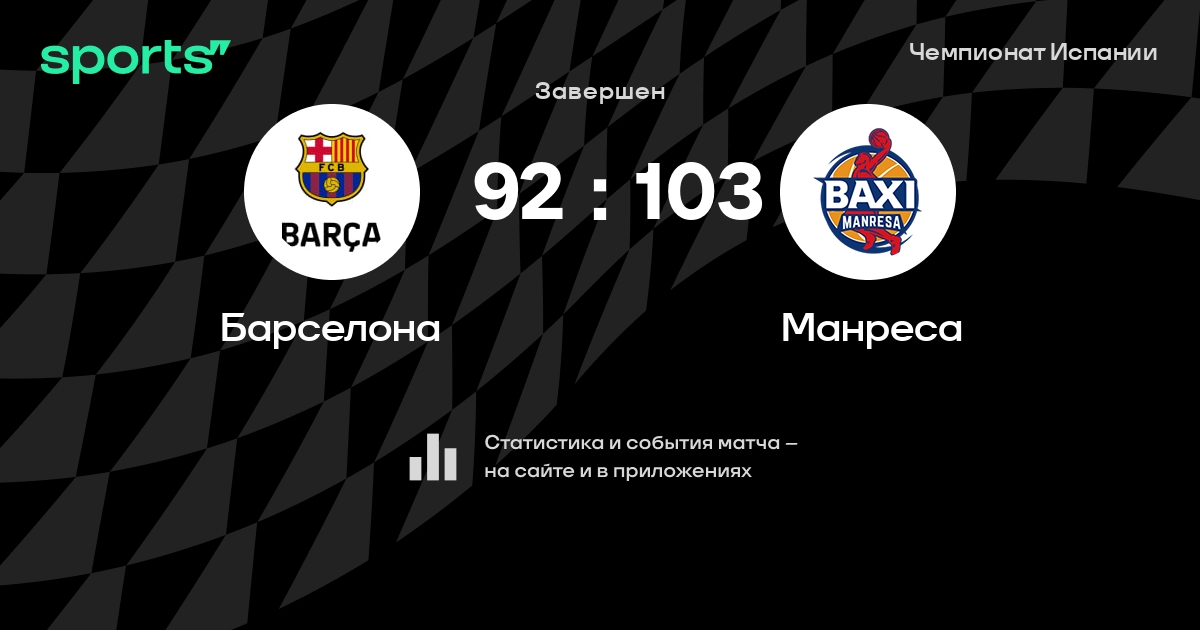 В прошедшем матче в рамках турнира Чемпионат Испании состоялась встреча команд Барселона - Манреса в городе Барселона (Испания) на стадионе Палау Блауграна (вместимость - 7585)