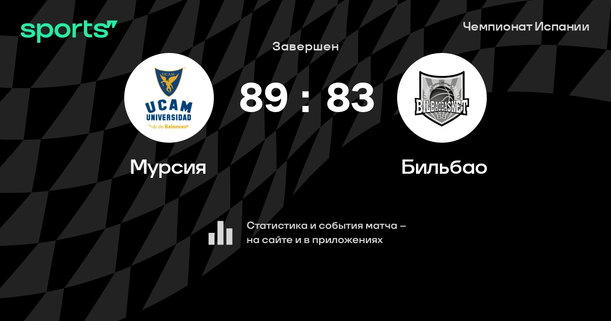 В прошедшем матче в рамках турнира Чемпионат Испании состоялась встреча команд Мурсия - Бильбао в городе Murcia на стадионе Palacio Municipal De Deportes