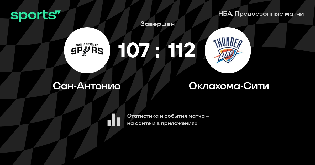 В прошедшем матче в рамках турнира НБА. Предсезонные матчи состоялась встреча команд Сан-Антонио - Оклахома-Сити в городе Сан-Антонио (США) на стадионе Frost Bank Center (вместимость - 18797)