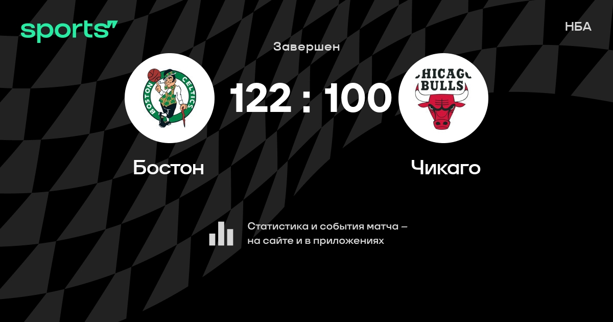 В прошедшем матче в рамках турнира НБА состоялась встреча команд Бостон - Чикаго в городе Бостон (США) на стадионе TD Garden (вместимость - 18624) со счетом 122 : 100.
