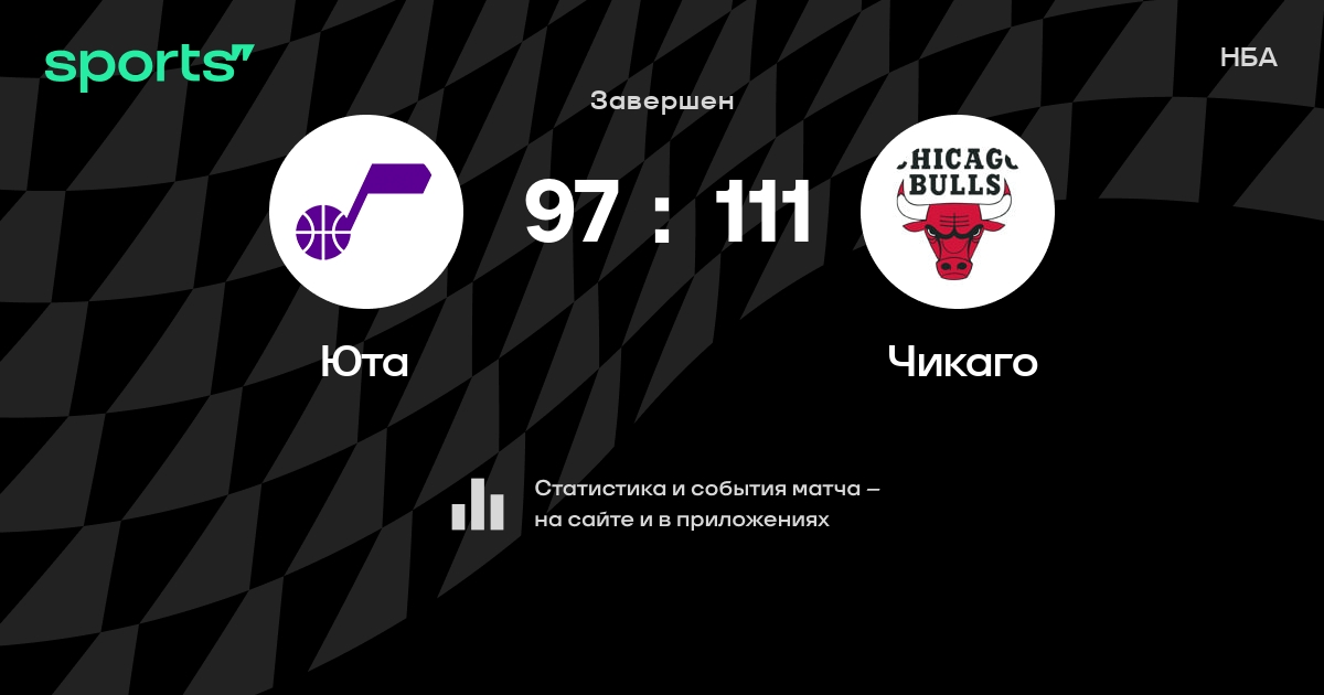 В прошедшем матче в рамках турнира НБА состоялась встреча команд Юта - Чикаго в городе Солт-Лейк-Сити (США) на стадионе Delta Center (вместимость - 19911) со счетом 97 : 111.