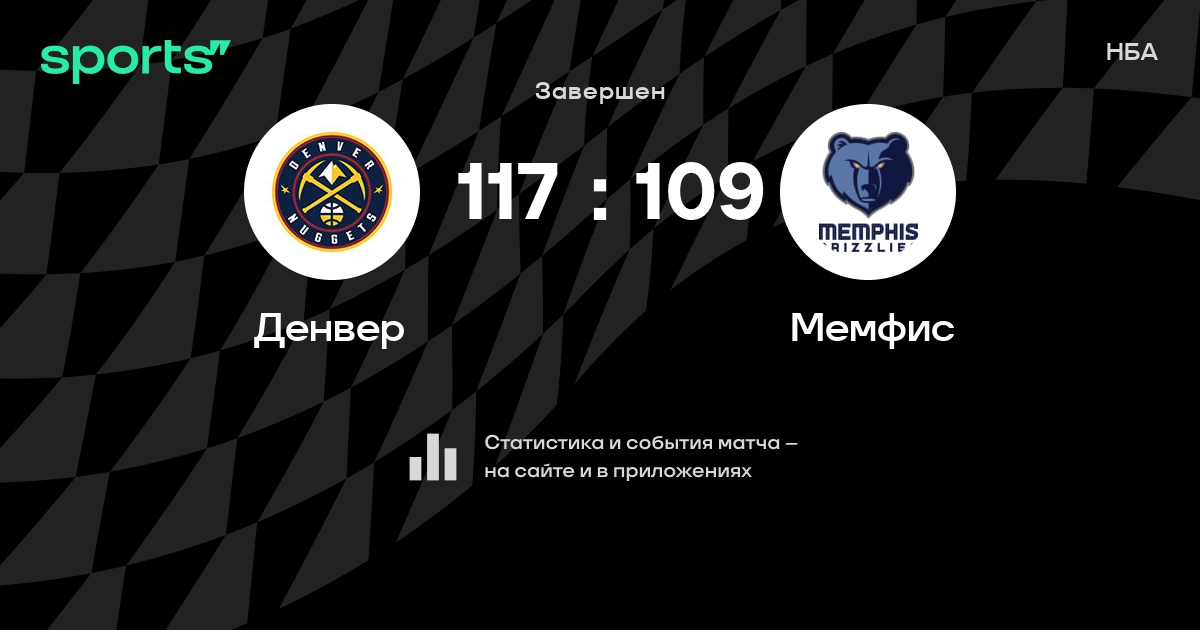 В прошедшем матче в рамках турнира НБА состоялась встреча команд Денвер - Мемфис в городе Денвер (США) на стадионе Ball Arena (вместимость - 18007) со счетом 117 : 109.