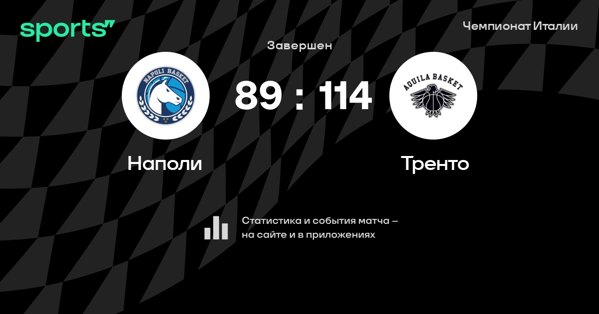 В прошедшем матче в рамках турнира Чемпионат Италии состоялась встреча команд Наполи - Тренто в городе на стадионе PalaEldo со счетом 89 : 114.
