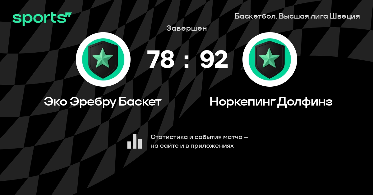 В прошедшем матче в рамках турнира Баскетбол. Высшая лига Швеция состоялась встреча команд Эко Эребру Баскет - Норкепинг Долфинз со счетом 78 : 92.