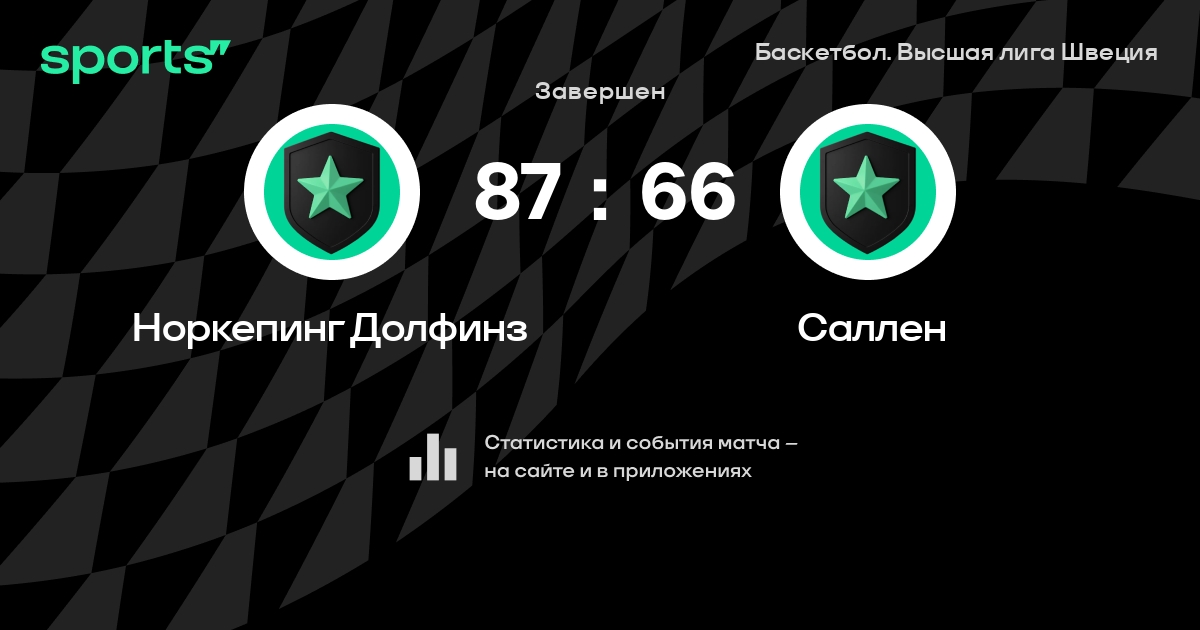 В прошедшем матче в рамках турнира Баскетбол. Высшая лига Швеция состоялась встреча команд Норкепинг Долфинз - Саллен со счетом 87 : 66.