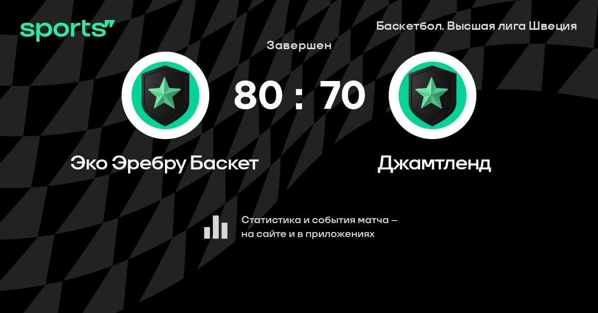В прошедшем матче в рамках турнира Баскетбол. Высшая лига Швеция состоялась встреча команд Эко Эребру Баскет - Джамтленд со счетом 80 : 70.