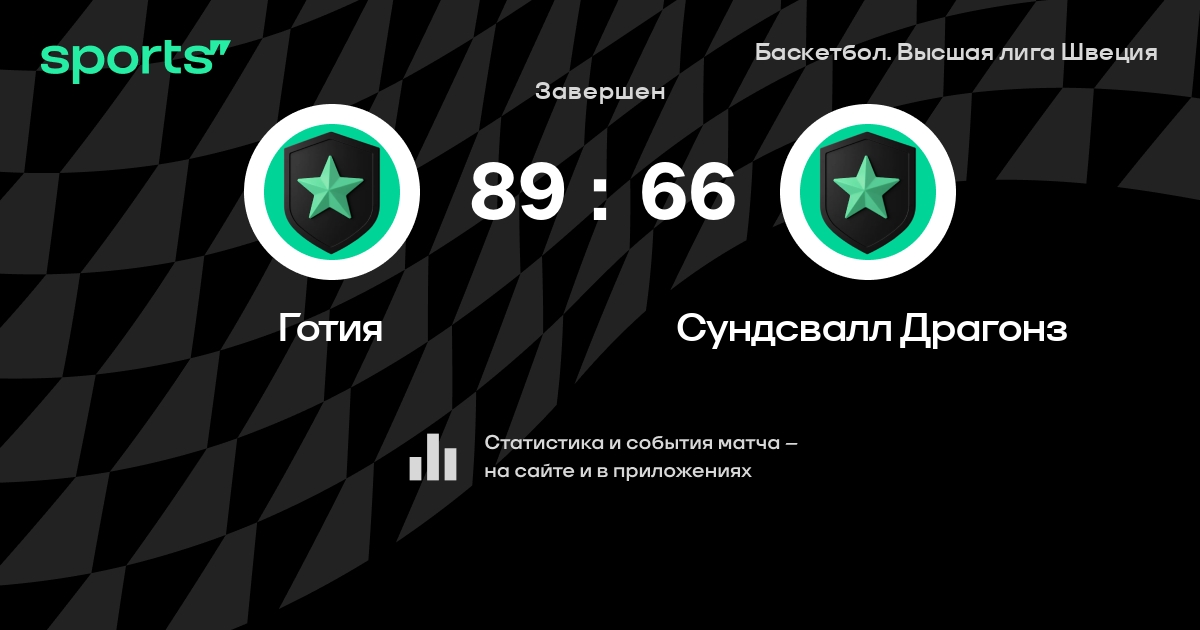 В прошедшем матче в рамках турнира Баскетбол. Высшая лига Швеция состоялась встреча команд Готия - Сундсвалл Драгонз со счетом 89 : 66.
