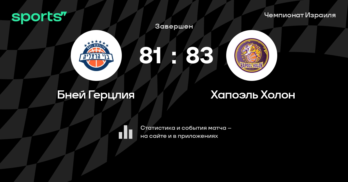 В прошедшем матче в рамках турнира Чемпионат Израиля Четвертьфинал состоялась встреча команд Бней Герцлия - Хапоэль Холон в городе на стадионе Hayovel Herzeliya
