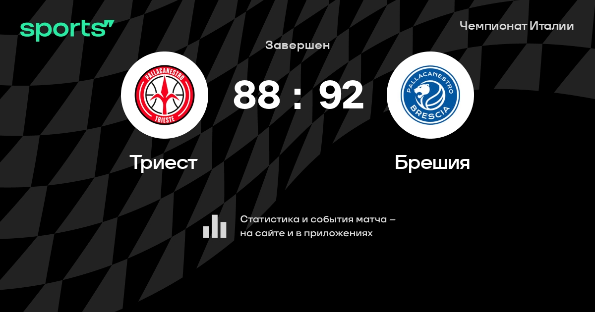 В прошедшем матче в рамках турнира Чемпионат Италии Четвертьфинал состоялась встреча команд Триест - Брешия в городе на стадионе Allianz Dome со счетом 88 : 92.