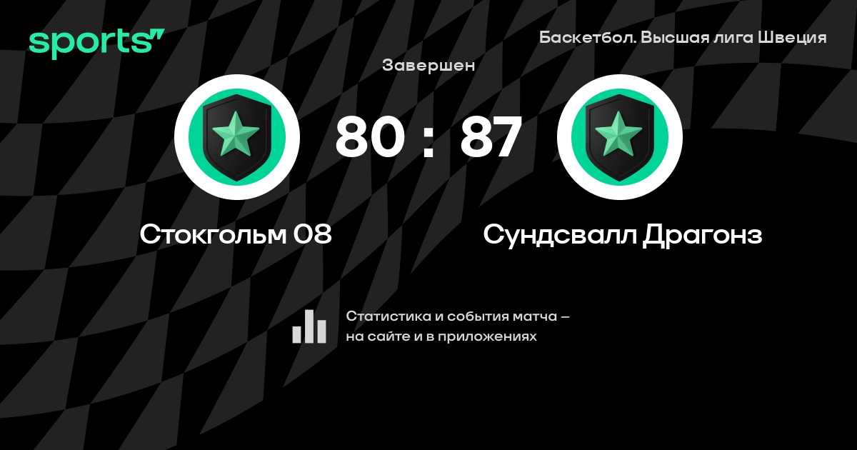 В прошедшем матче в рамках турнира Баскетбол. Высшая лига Швеция состоялась встреча команд Стокгольм 08 - Сундсвалл Драгонз со счетом 80 : 87.