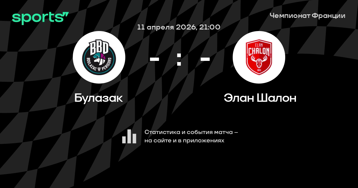 В предстоящем матче в рамках турнира Чемпионат Франции пройдет встреча команд Булазак - Элан Шалон в городе на стадионе Salle des sports du Palio.