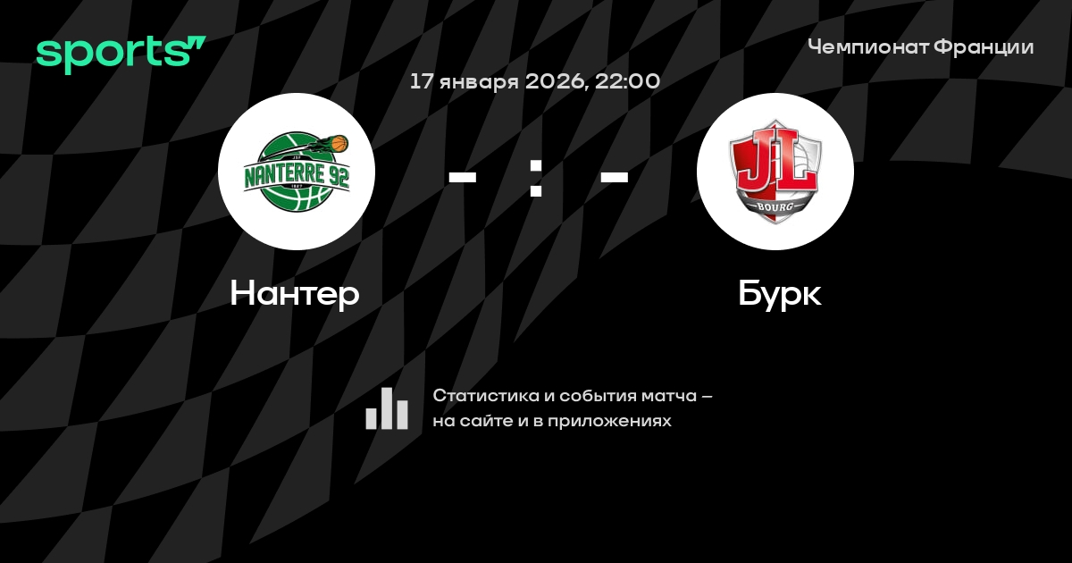 В предстоящем матче в рамках турнира Чемпионат Франции пройдет встреча команд Нантер - Бурк в городе на стадионе Palais des Sports Maurice Thorez.
