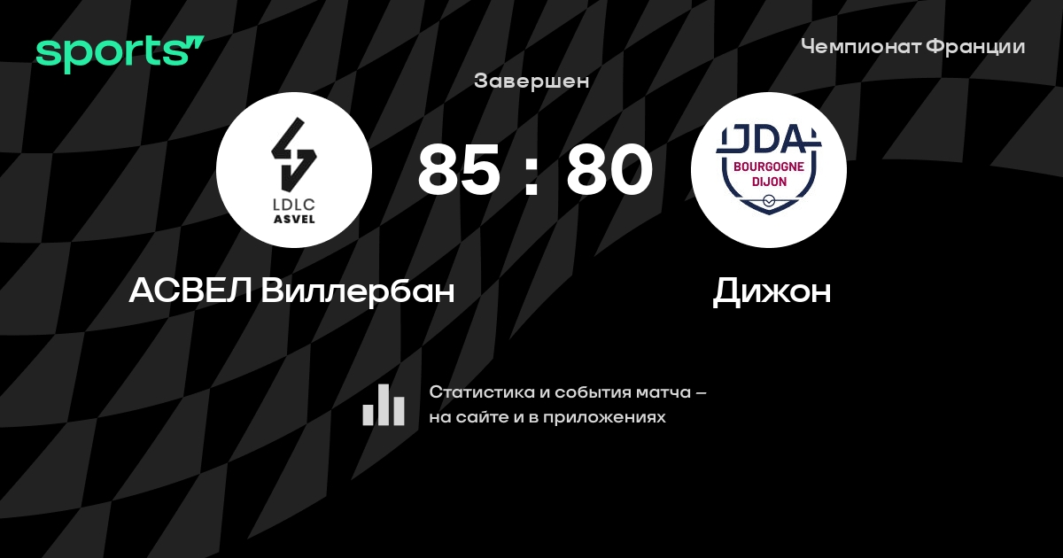 В прошедшем матче в рамках турнира Чемпионат Франции состоялась встреча команд АСВЕЛ Виллербан - Дижон в городе Виллербанн (Франция) на стадионе Астробаль (вместимость - 5556)