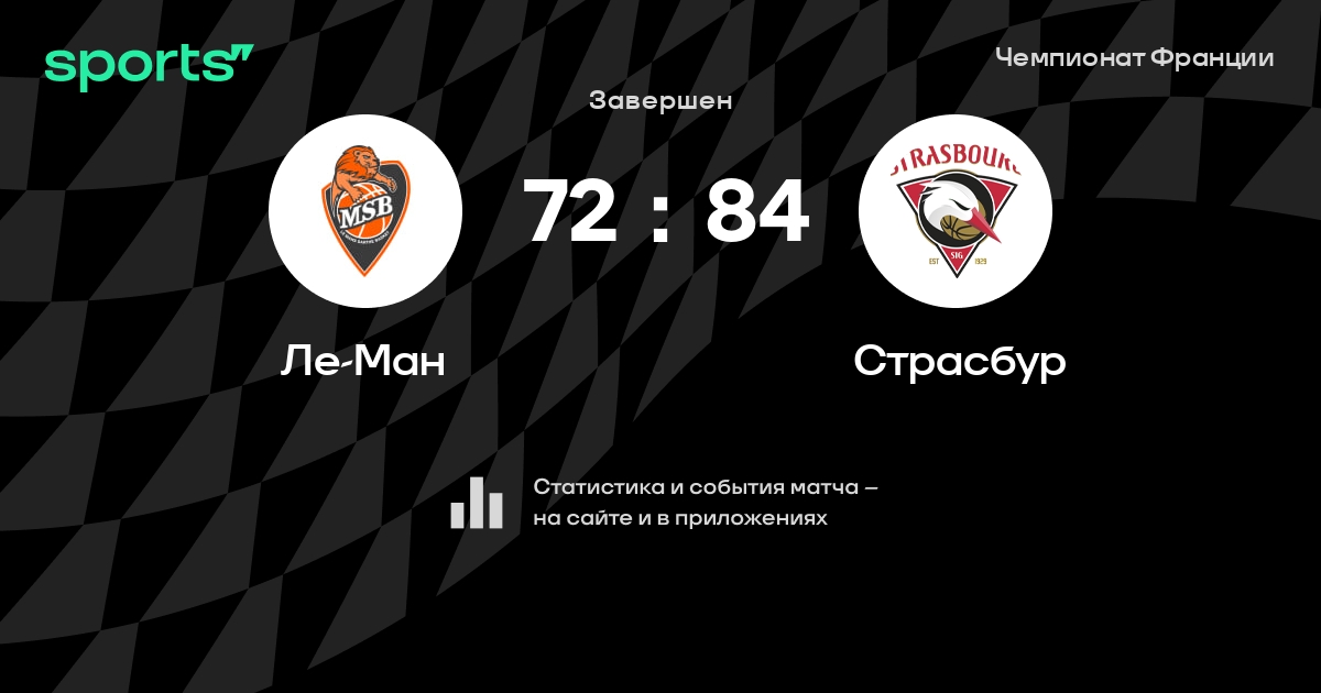 В прошедшем матче в рамках турнира Чемпионат Франции состоялась встреча команд Ле-Ман - Страсбур в городе на стадионе Antarès со счетом 72 : 84.