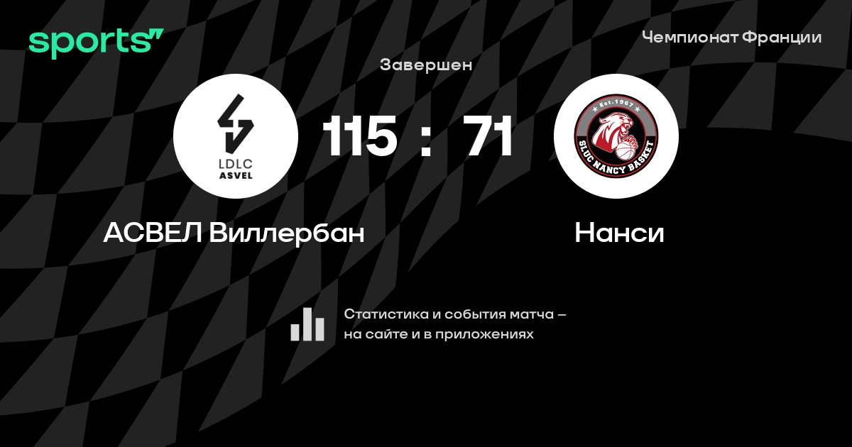 В прошедшем матче в рамках турнира Чемпионат Франции состоялась встреча команд АСВЕЛ Виллербан - Нанси в городе Виллербанн (Франция) на стадионе Астробаль (вместимость - 5556)