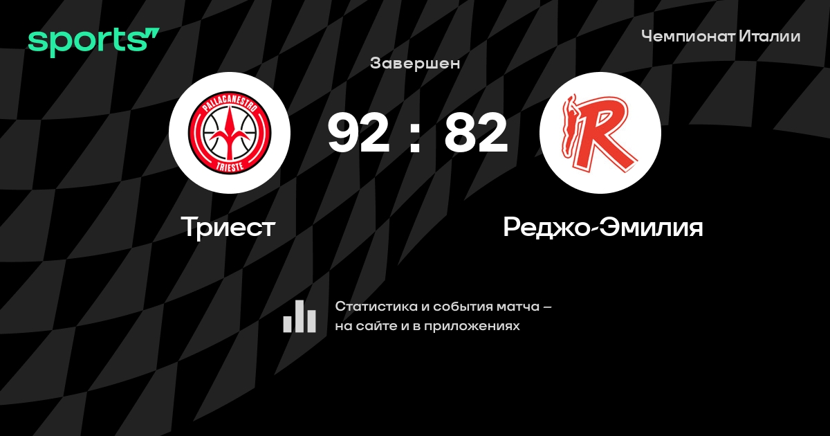 В прошедшем матче в рамках турнира Чемпионат Италии состоялась встреча команд Триест - Реджо-Эмилия в городе на стадионе Allianz Dome со счетом 92 : 82.