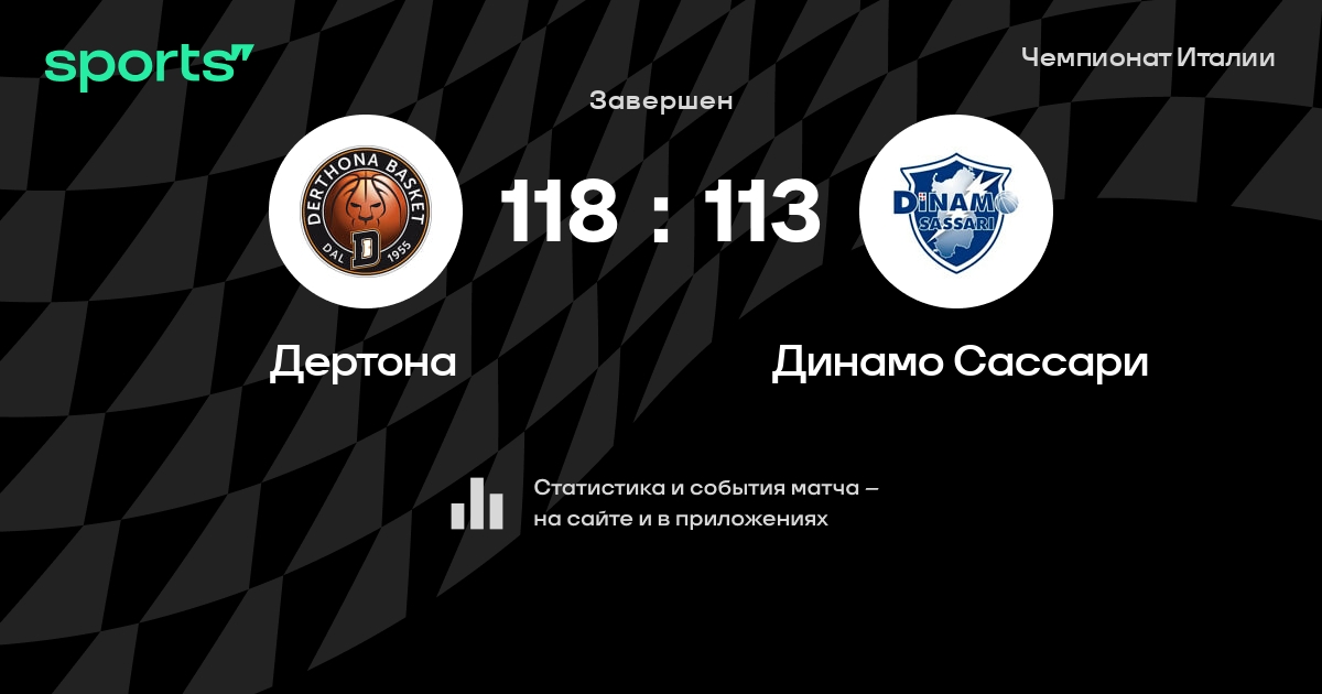 В прошедшем матче в рамках турнира Чемпионат Италии состоялась встреча команд Дертона - Динамо Сассари в городе на стадионе Cittadella dello Sport di Tortona