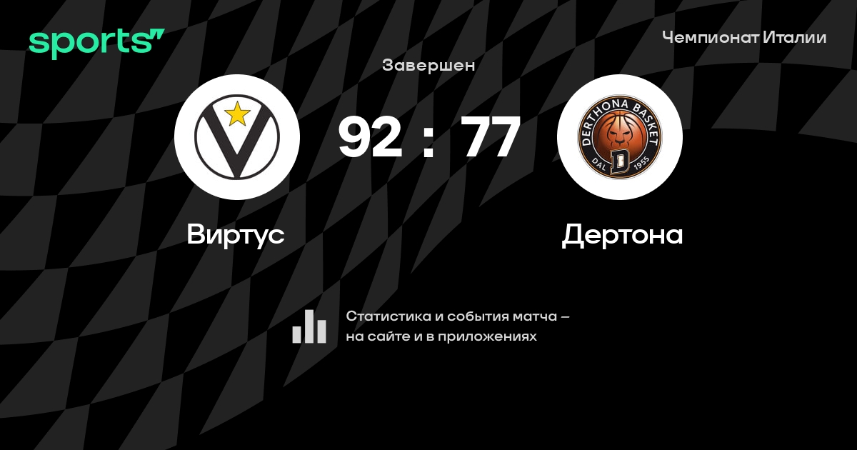 В прошедшем матче в рамках турнира Чемпионат Италии состоялась встреча команд Виртус - Дертона в городе Болонья (Италия) на стадионе Виртус Арена (вместимость - 9980)