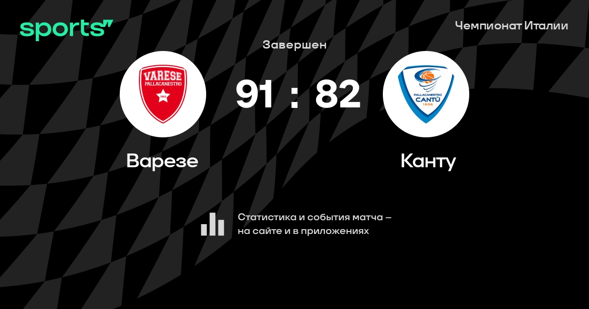 В прошедшем матче в рамках турнира Чемпионат Италии состоялась встреча команд Варезе - Канту в городе на стадионе Enerxenia Arena со счетом 91 : 82.
