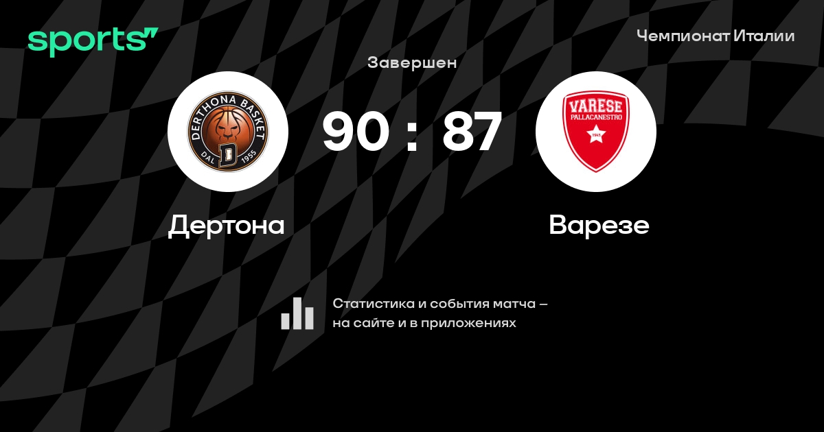 В прошедшем матче в рамках турнира Чемпионат Италии состоялась встреча команд Дертона - Варезе в городе на стадионе Cittadella dello Sport di Tortona со счетом 90 : 87.