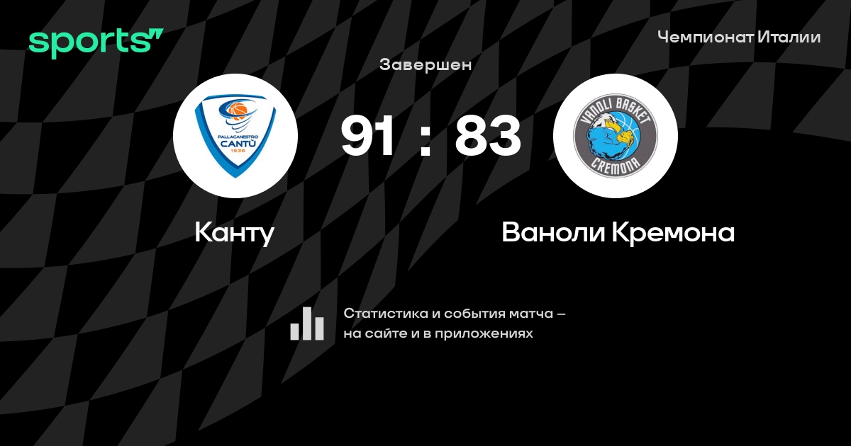 В прошедшем матче в рамках турнира Чемпионат Италии состоялась встреча команд Канту - Ваноли Кремона в городе на стадионе PalaBancoDesio со счетом 91 : 83.