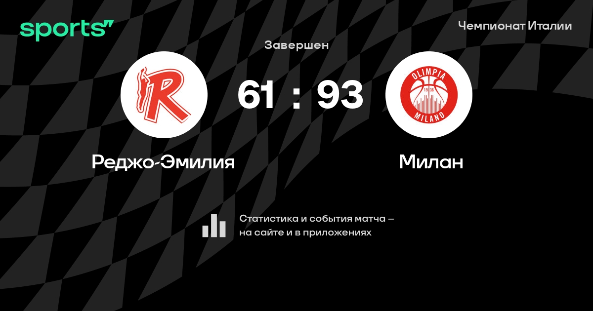 В прошедшем матче в рамках турнира Чемпионат Италии состоялась встреча команд Реджо-Эмилия - Милан в городе на стадионе Palasport Bigi со счетом 61 : 93.