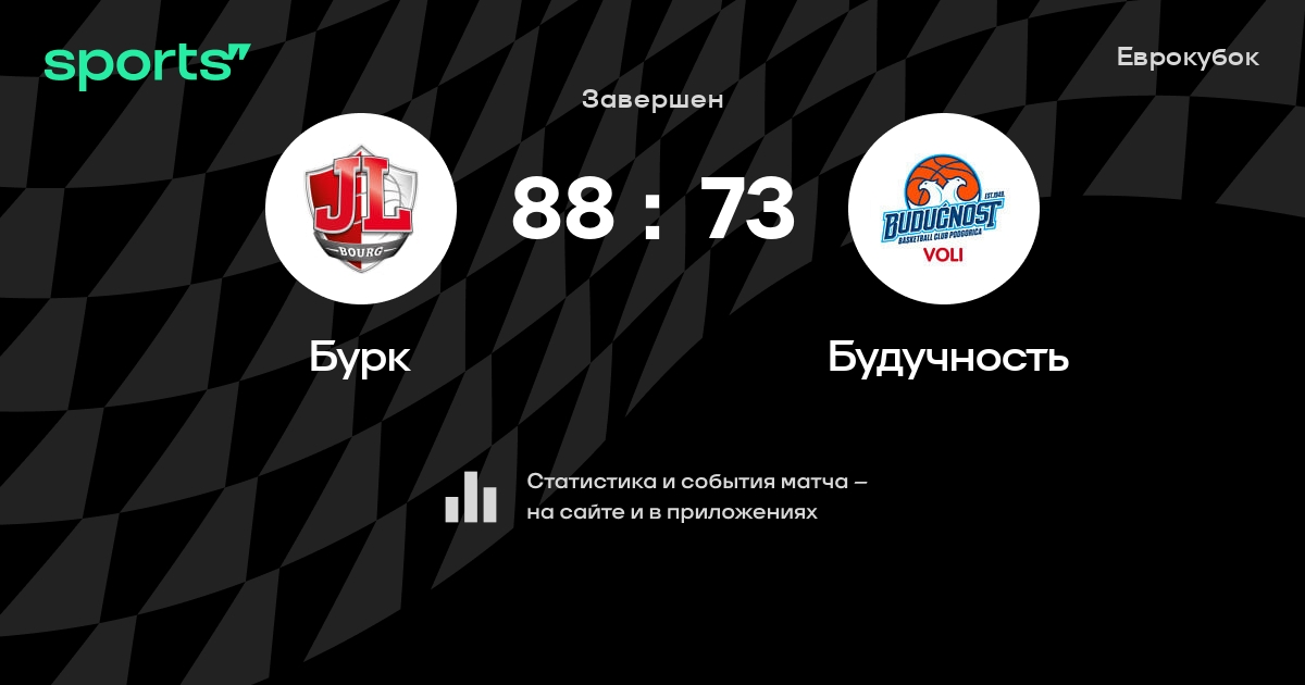 В прошедшем матче в рамках турнира Еврокубок состоялась встреча команд Бурк - Будучность в городе на стадионе Ekinox со счетом 88 : 73.