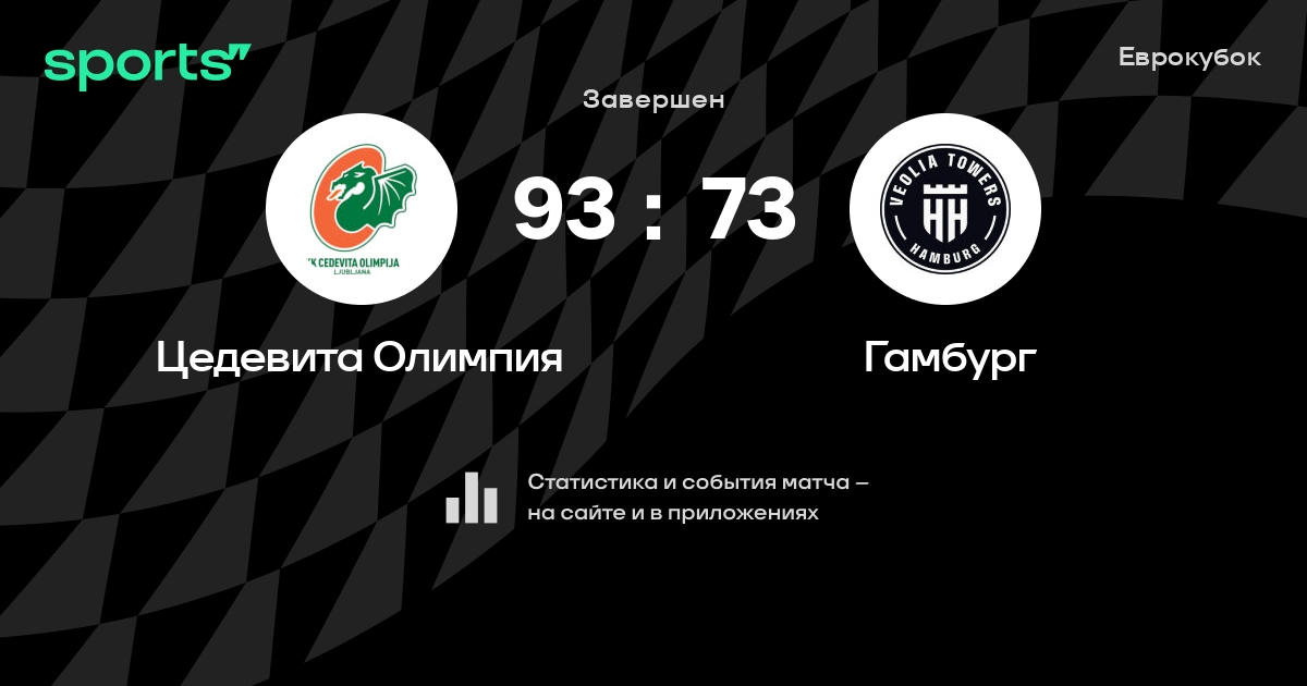 В прошедшем матче в рамках турнира Еврокубок состоялась встреча команд Цедевита Олимпия - Гамбург в городе на стадионе Dvorana Stožice со счетом 93 : 73.