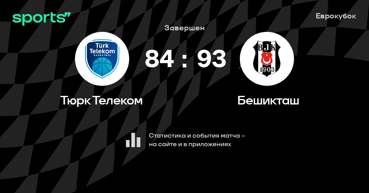В прошедшем матче в рамках турнира Еврокубок состоялась встреча команд Тюрк Телеком - Бешикташ в городе Ankara на стадионе Ankara Arena со счетом 84 : 93.