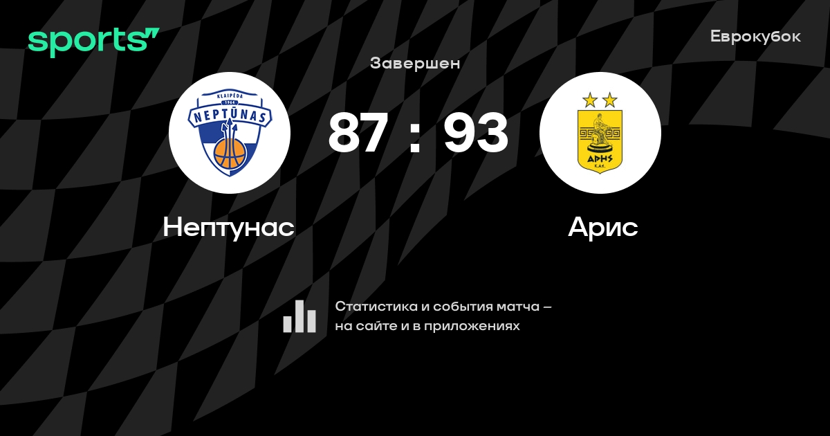 В прошедшем матче в рамках турнира Еврокубок состоялась встреча команд Нептунас - Арис в городе на стадионе Švyturio Arena со счетом 87 : 93.