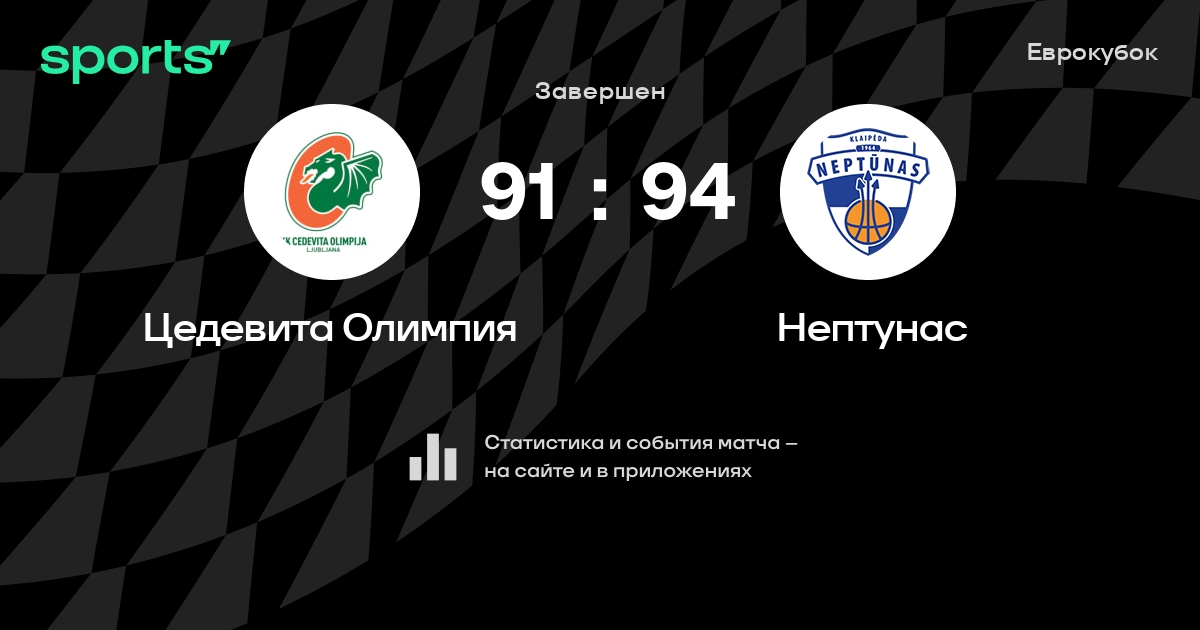 В прошедшем матче в рамках турнира Еврокубок состоялась встреча команд Цедевита Олимпия - Нептунас в городе на стадионе Dvorana Stožice со счетом 91 : 94.