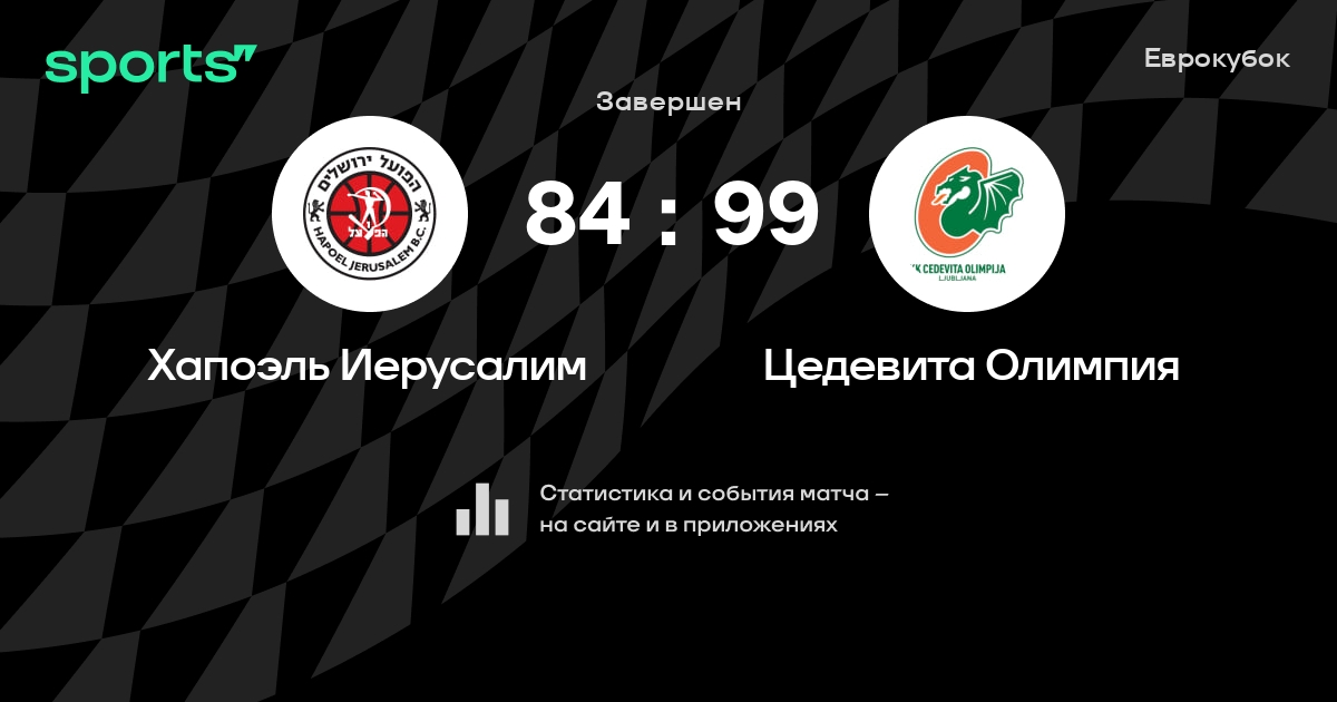 В прошедшем матче в рамках турнира Еврокубок состоялась встреча команд Хапоэль Иерусалим - Цедевита Олимпия в городе на стадионе Ranko Žeravica Sports Hall