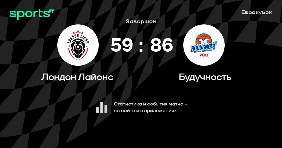 В прошедшем матче в рамках турнира Еврокубок состоялась встреча команд Лондон Лайонс - Будучность в городе на стадионе Copper Box Arena со счетом 59 : 86.