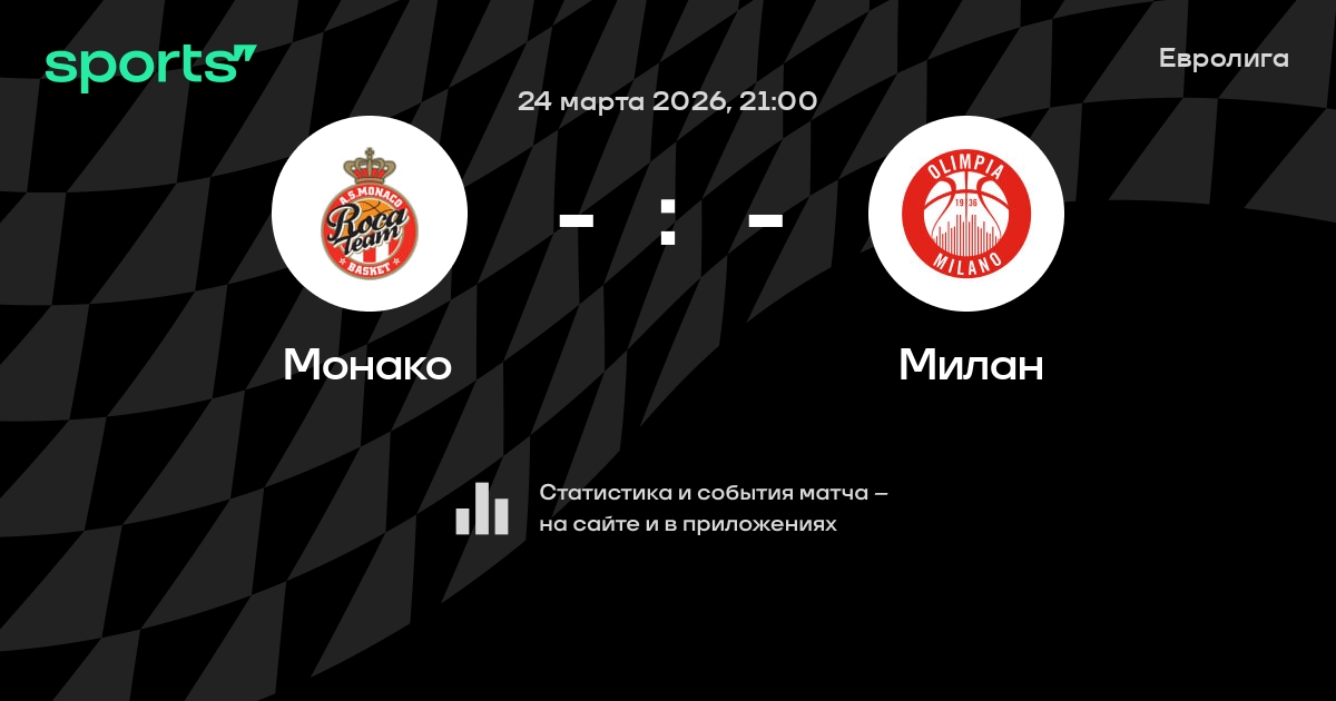 В предстоящем матче в рамках турнира Евролига пройдет встреча команд Монако - Милан . Начало встречи запланировано на 21:00 24 марта, 2026 2026.