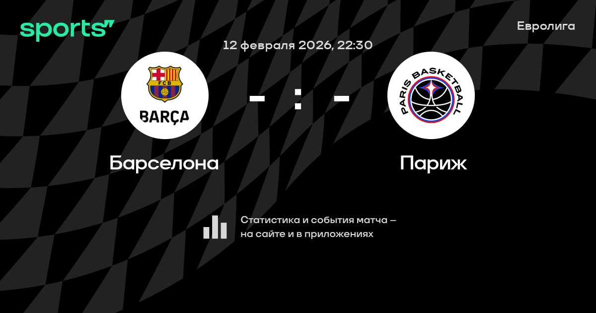 В предстоящем матче в рамках турнира Евролига пройдет встреча команд Барселона - Париж . Начало встречи запланировано на 22:30 12 февраля, 2026 2026.