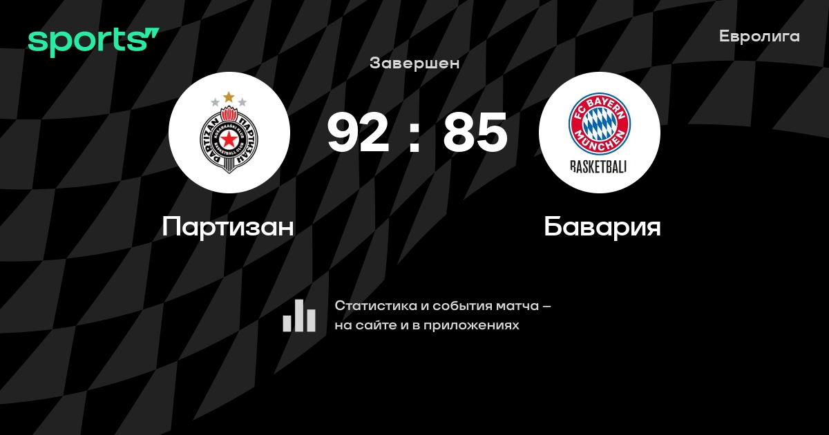 В прошедшем матче в рамках турнира Евролига состоялась встреча команд Партизан - Бавария в городе Белград (Сербия) на стадионе Белград Арена (вместимость - 22386)