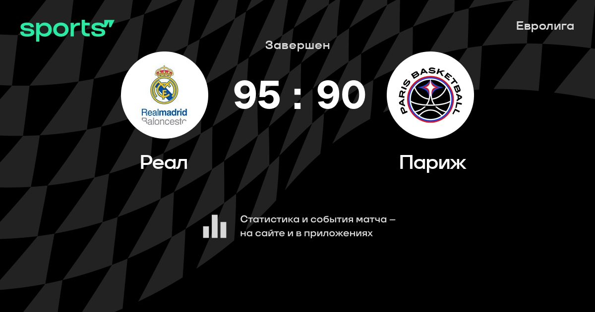 В прошедшем матче в рамках турнира Евролига состоялась встреча команд Реал - Париж в городе Мадрид (Испания) на стадионе Мовистар Арена (вместимость - 15000)