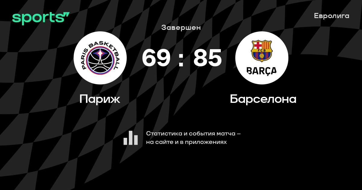 В прошедшем матче в рамках турнира Евролига состоялась встреча команд Париж - Барселона в городе Париж (Франция) на стадионе Адидас Арена (вместимость - 8000)