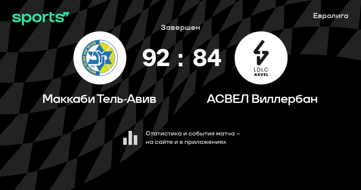 В прошедшем матче в рамках турнира Евролига состоялась встреча команд Маккаби Тель-Авив - АСВЕЛ Виллербан в городе Тель-Авив (Израиль) на стадионе Менора-Мивтахим Арена (вместимость - 11700)