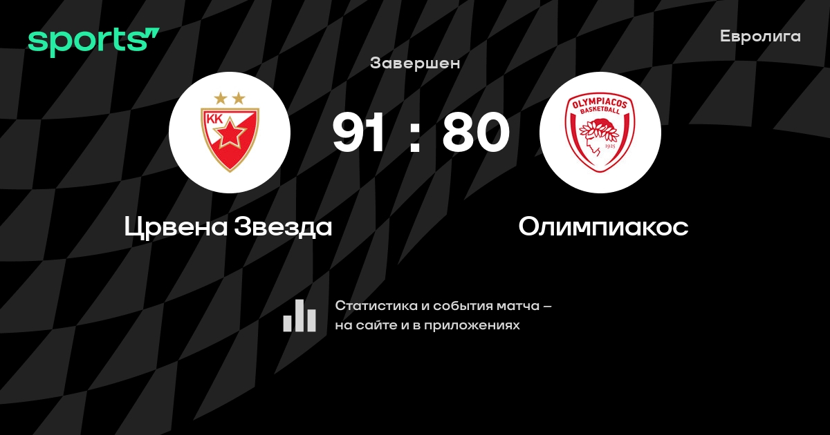 В прошедшем матче в рамках турнира Евролига состоялась встреча команд Црвена Звезда - Олимпиакос в городе Белград (Сербия) на стадионе Белград Арена (вместимость - 22386)